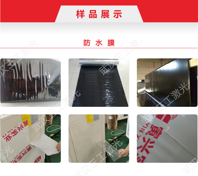 该设备针对各种PE防水膜,利用激光的热效应,无接触的对薄膜进行烧灼。薄膜上划线全透、半透均可控制,能量随速度变化保证变速时加工效果的一致性。