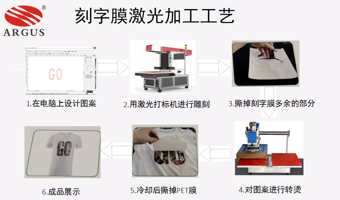 随着现代社会对个性化、时尚感的要求,刻字膜在一定程度上满足了客户的要求。同样的,使用刻字膜先通过激光打标机进行雕刻后再撕离多余的部分,通过烫画机烫印在布料上面,流程操作简单快捷。