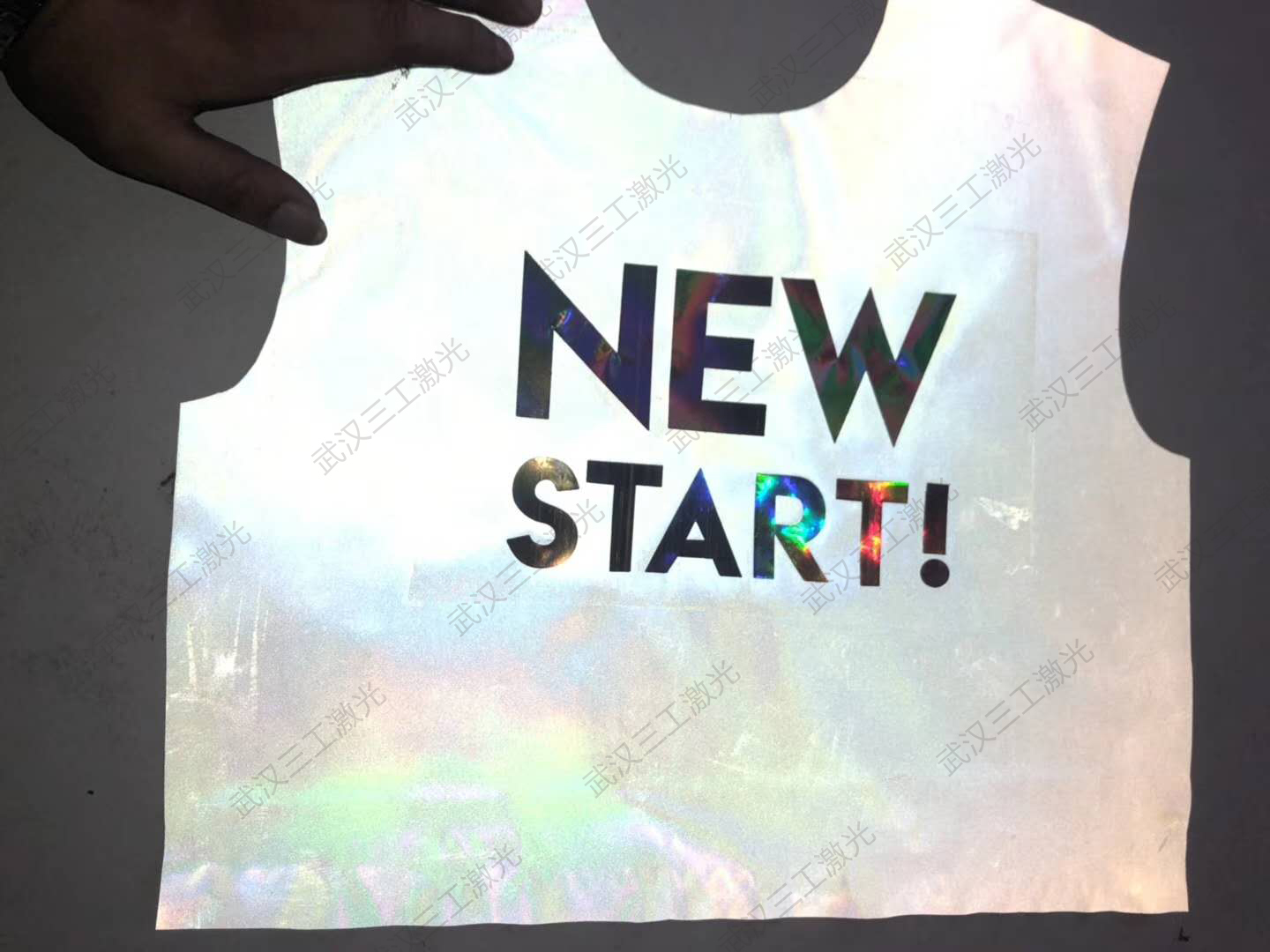 如短袖或卫衣胸前、后背的镭射图案等,多彩绚丽的镭射布料,增加衣服的设计感与时尚感,成为衣服上的点睛之笔。然而,对于镭射面料的切割工艺,切割要求随之提高,集切割,雕刻,镂空于一体的激光打标机替代了传统的刀裁工艺,其在效率准确性等方便得到了大大提升,可实现镭射布料图案的快速利落切割,边缘光滑平整,效果好,后期通过压烫工艺印于服装上,实现服装的品质提升,打造时尚靓丽的服饰新风尚。